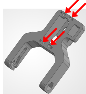 The below image is of the Link B1 for the robotic arm. Everywhere where there is an 'H' is a hole where a heat insert should be installed. There are 4x heat inserts for Link B1.
