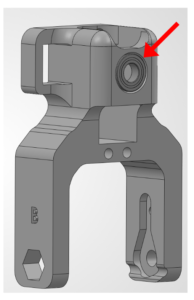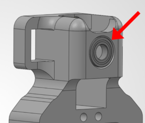 Take the small bearing and insert it into the side of L1 Housing in the slot as shown. This bearing acts as a guide for the Link A that will be added later. It should fit snugly into place.