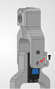 Once again, take the tiny M3 Phillips screw and lock the servo horn onto the L1 motor shaft. (Cut view of the arm is shown)