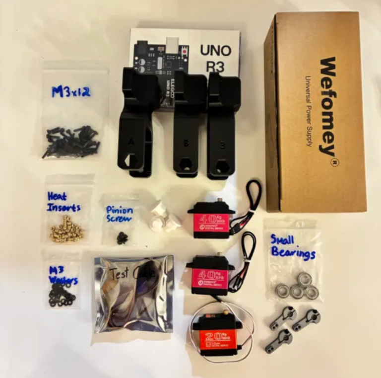 🛠️ Needed Parts: 20kg Servo (1x), M3 Bolts (4x), M3 Washers (4x), Arm Base (1x)